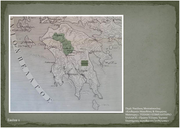 Στην περιοχή της Πελοποννήσου, [εικόνα 2], οι κυριότερες εστίες παραδοσιακών χτιστών & μαστόρων, που έδωσαν «συνάφια δουλειάς ή μπουλούκια» που από την άνοιξη μέχρι και το φθινόπωρο άφηναν τα σπίτια τους για να φτιάξουν άλλων τα σπίτια σε άλλα μέρη της Πελοποννήσου εντοπίζονται: