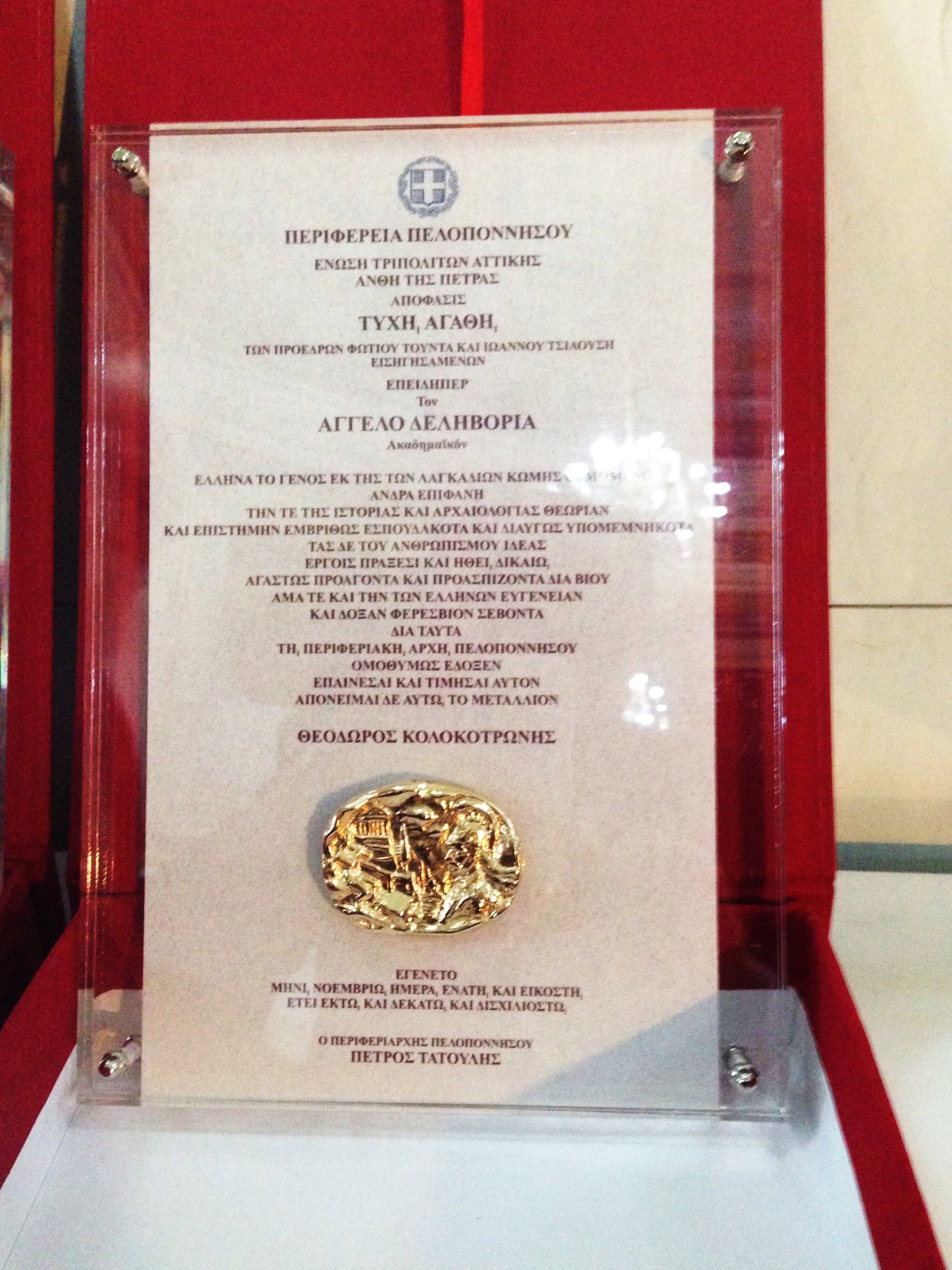 Την Τρίτη 29 Νοεμβρίου στην ιστορική αίθουσα συνεδριάσεων της Παλαιάς Βουλής που γέμισε από πλήθος κόσμου, η Περιφέρεια Πελοποννήσου, τα Άνθη της Πέτρας και η Ένωση Τριπολιτών Αττικής τίμησαν δυο σπουδαίους ανθρώπους των Γραμμάτων και του Πολιτισμού, τον Πρόεδρο της Ακαδημίας Αθηνών Θανάση Βαλτινό και τον Ακαδημαϊκό Άγγελο Δεληβορριά.