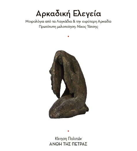Την Κυριακή 2 Απριλίου 2017, τα Άνθη της Πέτρας διοργανώνουν στο Πόλις Αρτ Καφέ που αποτελεί ένα δημοφιλή χώρο στη Στοά του Βιβλίου (Πεσματζόγλου 5, Αθήνα, ώρα 19:30) την παρουσίαση του CD Αρκαδική Ελεγεία. Το μουσικό έργο που πλέον κυκλοφορεί σε δίσκο (ύστερα από την ευγενική χορηγία της ALPHA BANK) και έχει βασιστεί σε μοιρολόγια που έχει αποθησαυρίσει σε σχετικό πόνημά της η Μαρία Πισιμίση-Κατσίκα. θα παρουσιαστεί από τον Λαογράφο Δρ, Γιάννη Δρίνη και τον συνθέτη Νότη Μαυρουδή, ενώ στο ιστορικό της συνθετικής δουλειάς θα αναφερθεί ο Νίκος Τάτσης. Δείγμα της δουλειάς θα παρουσιαστεί από τους μουσικούς και τραγουδιστές που συμμετέχουν στο έργο μετά το τέλος των παρουσιάσεων. Με την παραγωγή αυτή, τα Άνθη της Πέτρας υπογραμμίζουν τη σχέση και την αλληλεπίδραση της τέχνης της πέτρας με άλλες πλευρές της άυλης πολιτιστικής κληρονομιάς της πατρίδας μας και αναδεικνύουν τη σημασία της ολιστικής προσέγγισης του έργου των Λαγκαδινών μαστόρων που έχουν επιλέξει. Η εκδήλωση θα ολοκληρωθεί με την βράβευση των μαθητών του Νηπιαγωγείου & του Δημοτικού Σχολείου Λαγκαδίων για την υψηλής συμβολικής αξίας πρωτοβουλία τους, να ενισχύσουν την προσπάθεια των Ανθέων για την αγορά του κτηρίου για το Κέντρο Παραδοσιακής Αρχιτεκτονικής καθώς και όλων των δωρητών. (Φωτογραφίες από το εξώφυλλο του CD και από τη διαδικασία εγγραφής με τον συνθέτη Νίκο Τάτση και την σπουδαία ηθοποιό Εύα Κοταμανίδου που απαγγέλλει τους στίχους των μοιρολογιών).