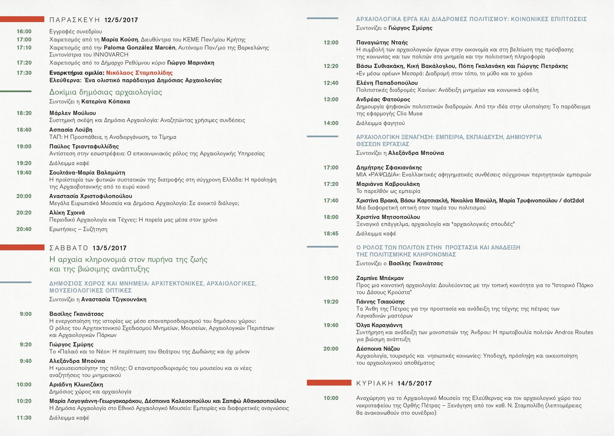 Τα Άνθη της Πέτρας είναι προσκεκλημένα στο πρώτο διεθνές συνέδριο που γίνεται στη χώρα μας για τη Δημόσια Αρχαιολογία. Ο όρος Δημόσια Αρχαιολογία υποδηλώνει το όχημα μεταφοράς της επιστημονικής γνώσης στους πολίτες. Το συνέδριο διοργανώνεται στο Πανεπιστήμιο Κρήτης (Φιλοσοφική Σχολή, Ρέθυμνο) από τις 12-14 Μαΐου 2017 στο πλαίσιο του Προγράμματος INNOVARCH – Innovating Training Aims for Public Archaeology.