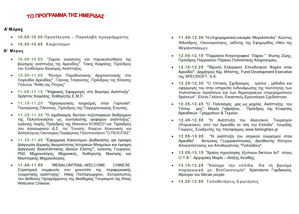 Η Παναρκαδική Ομοσπονδία Ελλάδος διοργάνωσε στην Αθήνα προσυνέδριο την περασμένη Κυριακή 24 Ιουνίου 2018 με θέμα «ΠΡΟΤΑΣΕΙΣ ΑΝΑΠΤΥΞΙΑΚΩΝ ΕΡΓΩΝ ΣΤΗΝ ΑΡΚΑΔΙΑ ΒΑΣΙΣΜΕΝΕΣ ΣΤΟΝ ΚΑΙΝΟΤΟΜΟ ΣΧΕΔΙΑΣΜΟ ΒΙΩΣΙΜΗΣ ΑΝΑΠΤΥΞΗΣ ΤΗΣ ΑΡΚΑΔΙΑΣ ΜΕ ΧΡΟΝΙΚΟ ΟΡΙΖΟΝΤΑ ΤΟ 2050 ΚΑΙ ΣΤΟ ΟΡΑΜΑ ΣΥΜΜΕΤΟΧΗΣ ΤΩΝ ΑΡΚΑΔΩΝ».