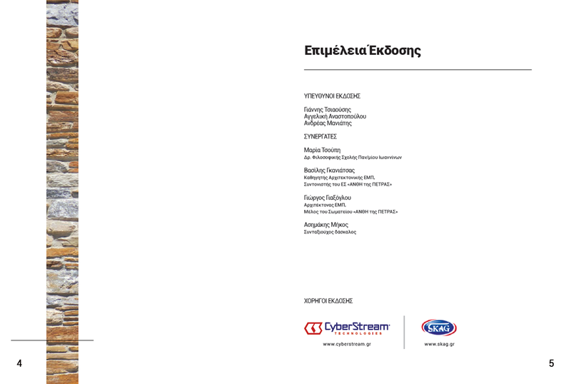Τα Άνθη της Πέτρας ευχαριστούν όλους όσους συμμετείχαν στην υλοποίηση αυτής της έκδοσης και ιδιαιτέρως τους χορηγούς (SKAG – Χρήστος Σταματόπουλος, CyberStream – Ανδρέας Μανιάτης) των οποίων η συμβολή ήταν καθοριστική.