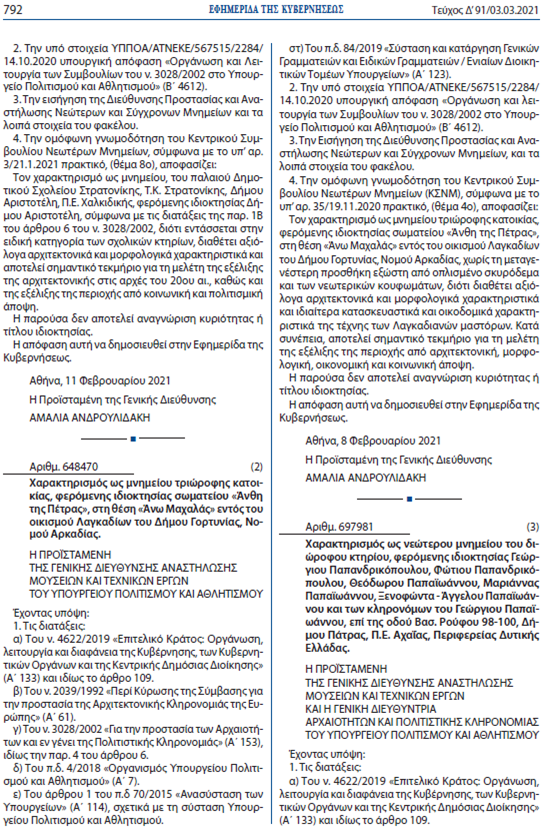 Η απόφαση του Κεντρικού Συμβουλίου Νεώτερων Μνημείων για την ανακήρυξη του ερειπωμένου Ρηγοπουλέικου αρχοντικού σε μνημείο δημοσιεύτηκε πολύ πρόσφατο Φύλλο της Εφημερίδας της Κυβερνήσεως. Η απόφαση αυτή αποτελεί μια σημαντική στιγμή όχι μόνο για τα Άνθη της Πέτρας, αλλά για την πολιτιτική κληρονομιά των Λαγκαδίων και της Αρκαδίας.