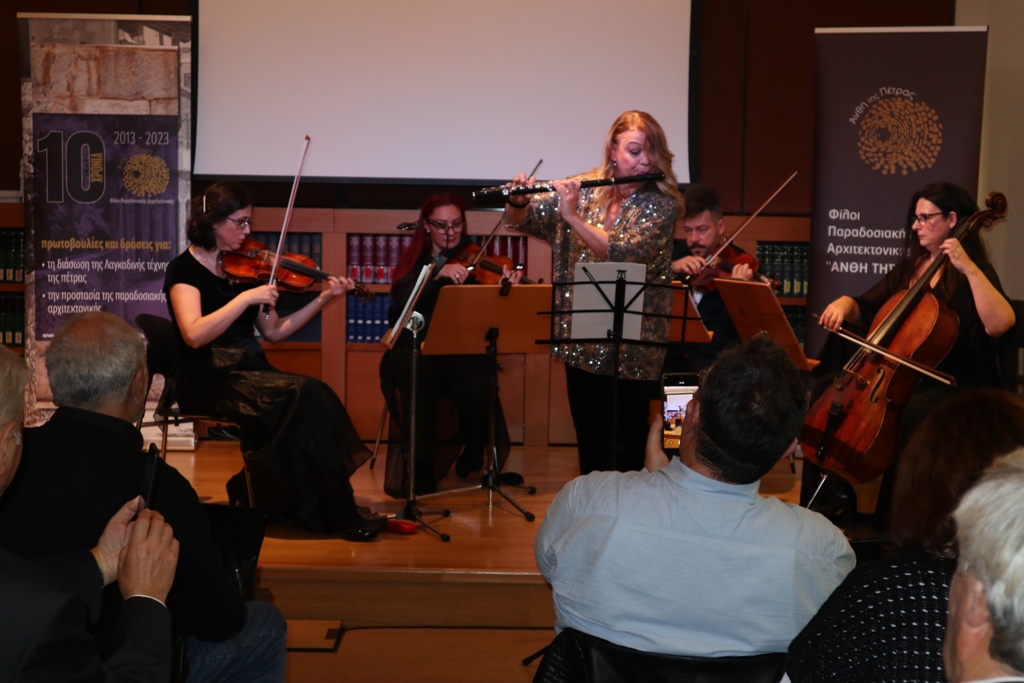 Εξαιρετική επιτυχία σημείωσε η εκδήλωση των ΑΝΘΕΩΝ ΤΗΣ ΠΕΤΡΑΣ που πραγματοποιήθηκε στις 13 Δεκεμβρίου 2023, στο Μέγαρο Μουσικής Αθηνών, με την ευκαιρία της συμπλήρωσης των 10 ετών παρουσίας του Σωματείου, με θέμα «Πρωτοβουλίες και ψηφιακές δράσεις για την Παραδοσιακή Αρχιτεκτονική».