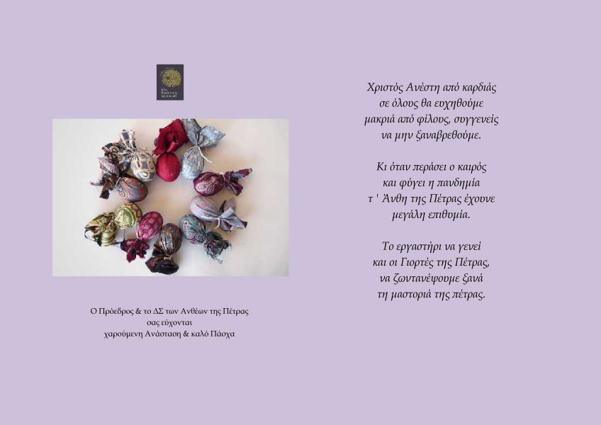 Επίκαιρο κι ελπιδοφόρο το μήνυμα της Πασχαλιάτικης κάρτας των Ανθέων της Πέτρας