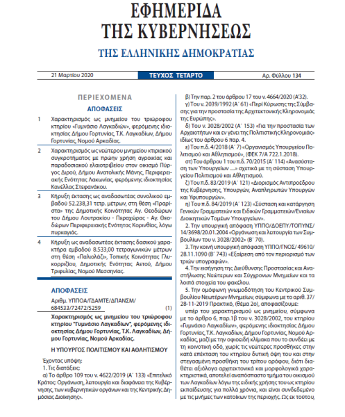 Δημοσιεύτηκε το ΦΕΚ με την υπουργική απόφαση για την ανακήρυξη του Γυμνασίου Λαγκαδίων ως προστατευόμενου και διατηρητέου μνημείου