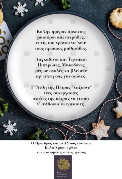 Η φετινή χριστουγεννιάτικη κάρτα της Κίνησής μας, ακολουθώντας την παράδοση των προηγούμενων χρόνων εμπεριέχει έναν ιδιαίτερο συμβολισμό. Τα κάλαντα των Ανθέων αντανακλούν το αίτημα για τη δημιουργία Σχολής μαθητείας της τέχνης της πέτρας στα Λαγκάδια και την αναγκαιότητα για το συντονισμό της ...