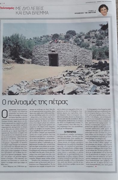 Ο Λουδοβίκος των Ανωγείων για τον πολιτισμό της πέτρας, τους Λαγκαδινούς μαστόρους και τα Άνθη της πέτρας σε σημερινό του άρθρο στο ΕΘΝΟΣ της ΚΥΡΙΑΚΗΣ