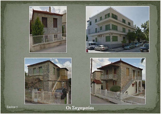 Στην Σπάρτη δραστήριοι πετρομάστορες, Λαγκαδιανοί, ήταν οι Σαχαμαίοι, [Εικόνα 7]. Ο Δημήτρης και ο Λεωνίδας Σαχάμης εγκαταστάθηκαν στην Σπάρτη, και πιο συγκεκριμένα στο Συκαράκι, ένα μικρό οικισμό δυτικά της πόλης, το 1890. Και οι γιοί τους , του Δημήτρη, Παναγιώτης & Νικόλαος και του Λεωνίδα, Δημήτρης, Βασίλης, Ιωάννης, Γεώργιος & Παναγιώτης, που ήταν και ονομαστός πελεκητής, ασχολήθηκαν και αυτοί με την Μαστοριά της Πέτρας. Χαρακτηριστικά δείγματα της δουλειάς τους είναι τα πέτρινα σπίτια, κτισμένα τον μεσοπόλεμο, που βρίσκονται πάνω στον δρόμο Σπάρτης - Αγίου Ιωάννη. Επίσης το συνεργείο αυτό είχε κατασκευάσει και τις τοιχοποιίες λιθοδομής της Κλινικής Γερουλάκου, στην Σπάρτη.